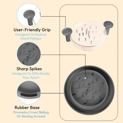 • تساعد على تقطيع وتمزيق الدجاج المطبوخ بسرعة كبيرة خلال ثوانٍ قليلة