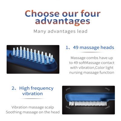 مشط تدليك الرأس مضاد لتساقط الشعر، مشط نمو الشعر بالأشعة تحت الحمراء، مدلك فروة الرأس، علاج الضوء الأحمر والأزرق، تدليك فروة الرأس
